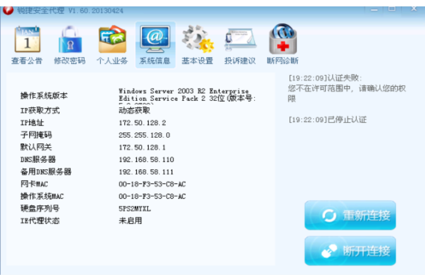 A:如果用户在1x认证时,提示如下信息,见截图,此时用户可以执行如下操作即可恢复:开始-à运行-àcmd-àipconfig /release-àipconfig /renew执行如下操作后,客户端设备将会重新获取IP地址,然后用户再进行1x认证即可解决问题。出现此问题的原因是:网络改造后,重新指定了新的网段IP地址,但是由于客户端并无感知,依然使用以前动态获取到的IP地址进行1x认证,则会提示不在权限范围内,解决方案就是手动操作,让客户端重新获取到新网段内的IP地址即可,具体操作如上。