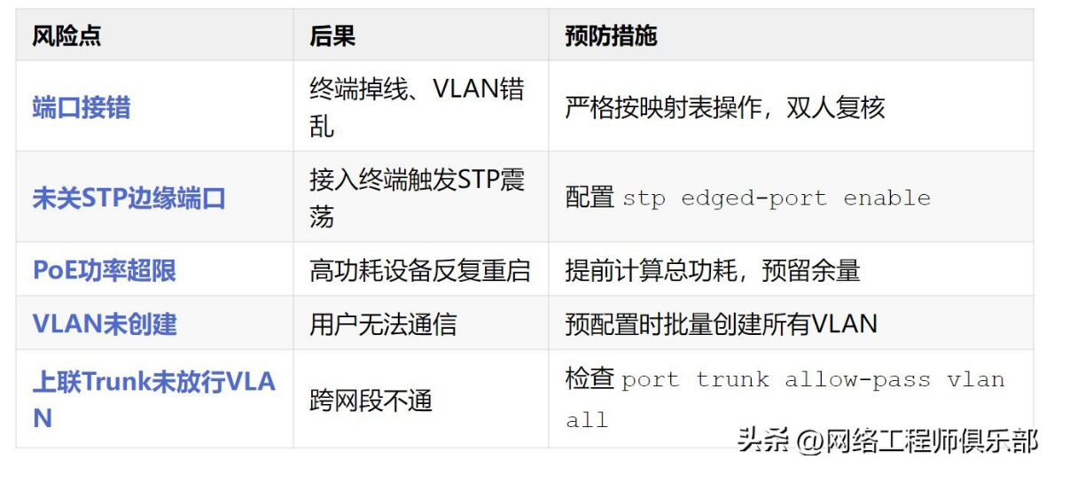 • 准备充分:配置、拓扑、回退方案缺一不可