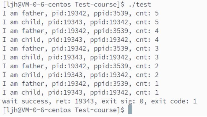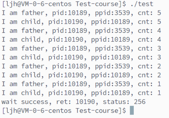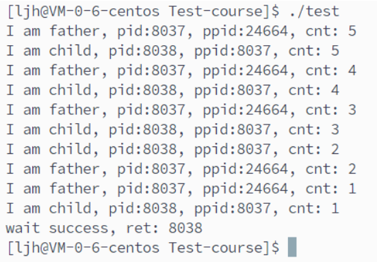 printf("I am father, pid:%d, ppid:%d, cnt: %d\n", getpid(), getppid(), cnt);