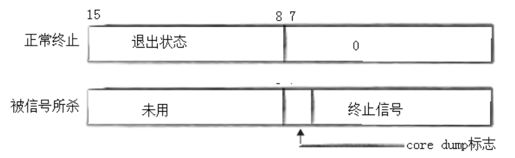 printf("子进程异常退出,终止信号:%d\n", WTERMSIG(status));
