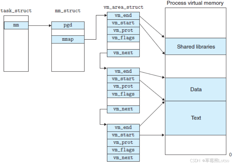 struct vm_area_struct *mmap; // 指向虚拟内存区域链表