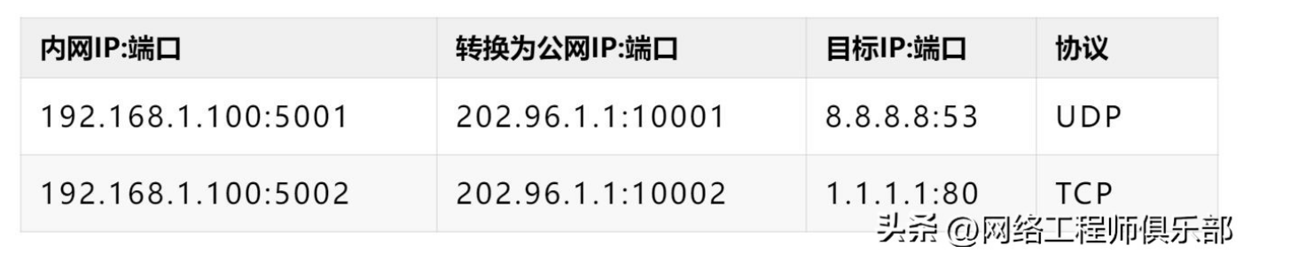 - 记录:192.168.1.100:5001 ↔ 202.96.1.1:10001