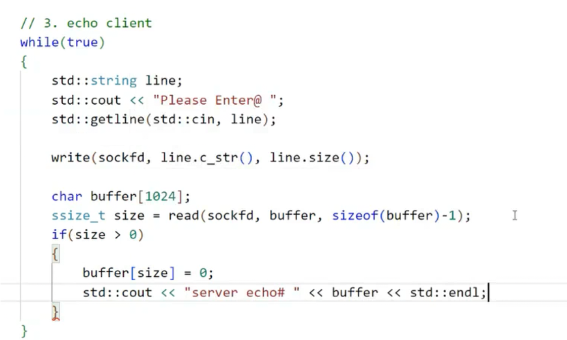 理清核心问题后,直接上 echo 客户端和服务器的核心代码,结合图片里的逻辑拆解。